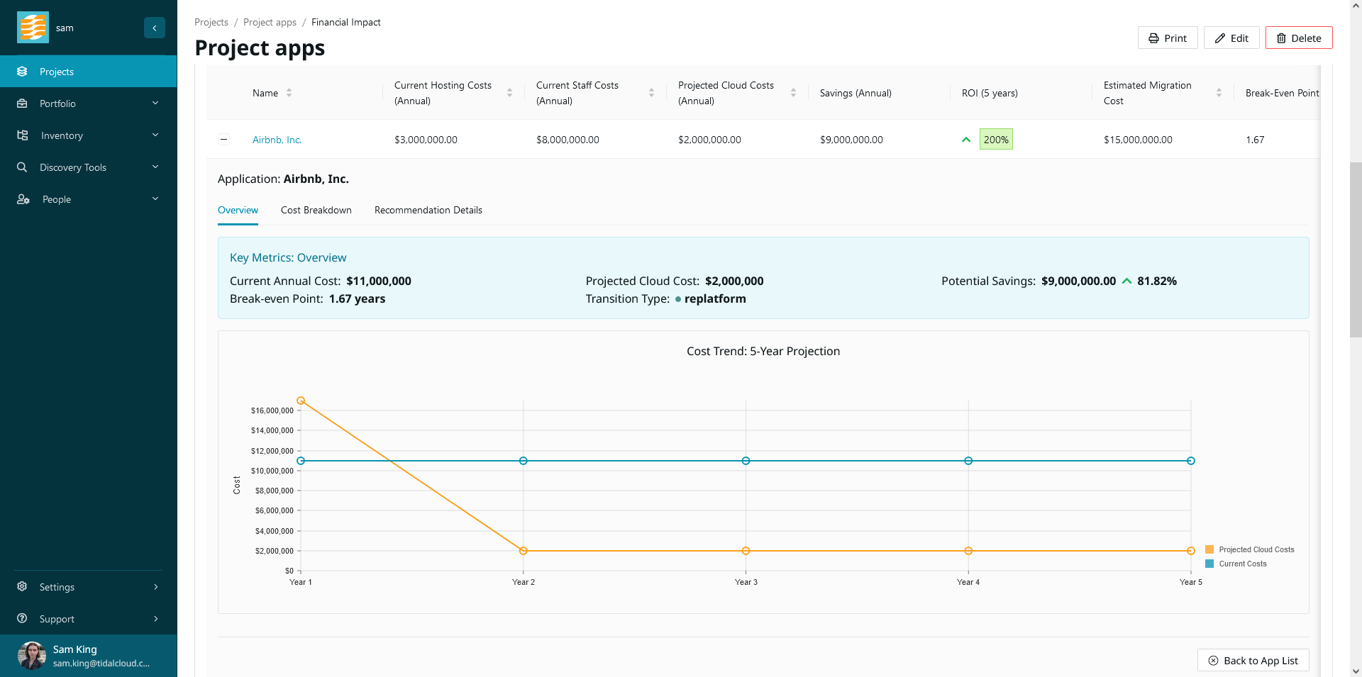 Tidal Accelerator empowers you to construct a compelling business case by visualizing the financial impact of your project. You can find your financial impact report by navigating to a project and clicking the ‘Financial Impact’ tab.